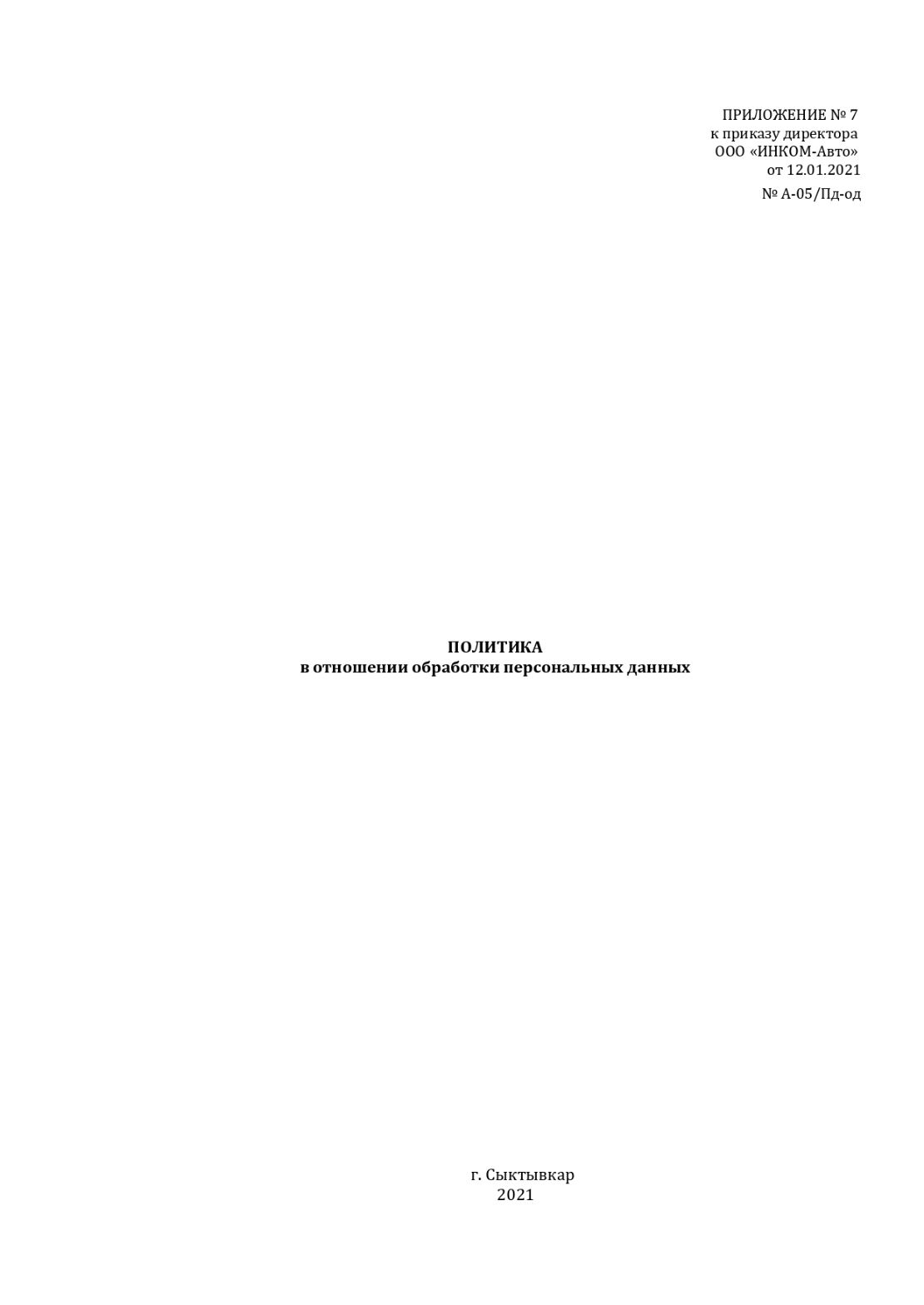 ПОЛИТИКА ОБРАБОТКИ ПЕРСОНАЛЬНЫХ ДАННЫХ